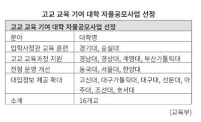 The selected universities will carry out basic projects for two years until 2026 to expand the linkage between high school education and universities, and to enhance the accountability and fairness of university admissions. Additionally, 16 of the selected universities will receive an additional 4 billion won in support for being selected for the autonomous project.