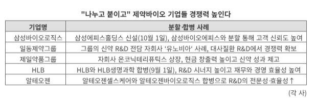 [Financial News] Recently, in the pharmaceutical and bio industry, maximizing efficiency through corporate division and merger has emerged as a new strategic keyword. It is analyzed that this is to enhance management expertise and business focus while securing synergy across the board, including the most important research and development (R&D).