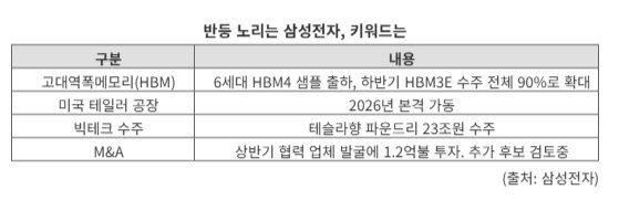 Samsung Electronics plans to regain its lost competitiveness starting with HBM4. The industry sees a high possibility of reversing the atmosphere as the judicial risks that have been holding back Chairman Jae-yong Lee for over 10 years have been resolved, and a large foundry order worth nearly 23 trillion won was recently secured from the U.S. automaker Tesla.