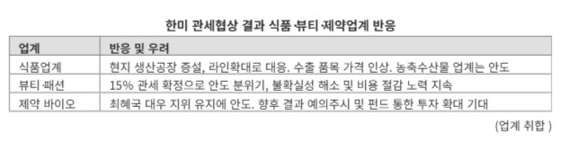 The pharmaceutical and bio industries also welcomed the relatively low tariff imposition compared to competing countries. In particular, the creation of a $200 billion fund, agreed upon to strengthen the strategic industry cooperation between the two countries, is expected to play a positive role in the entry of domestic pharmaceutical and bio companies into the US market.