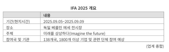 A domestic home appliance industry official said, "The status of IFA changed after its 100th anniversary last year, and from this year, it seems to be focusing on establishing its unique color," adding, "On-site, business meetings and partnership discussions between companies will also be further expanded."