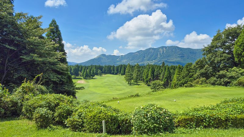 Akamizu Golf Resort is located near Aso-Kuju National Park, atop one of the world’s largest caldera plains formed by a volcanic eruption approximately 90,000 years ago. The course is famed for its unique terrain, often described as 'nature’s design.' Mist flowing along the fairways and the distant silhouette of Mount Aso create unforgettable scenes for golfers.