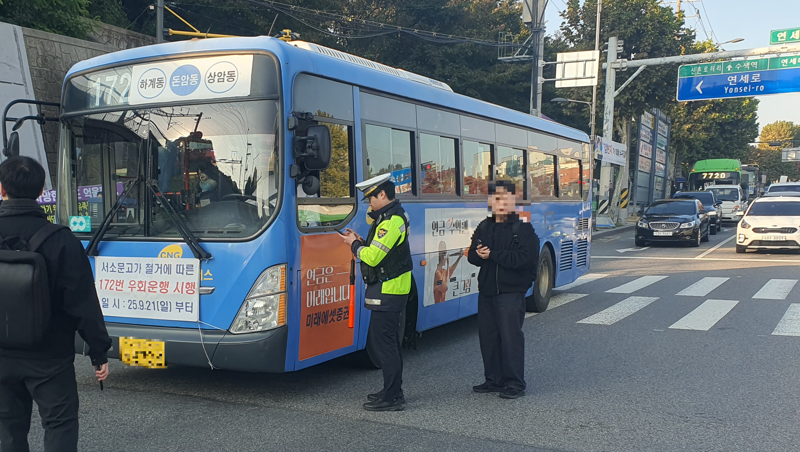 Seodaemun Police Station also deployed traffic officers to congested areas such as Yeonhui Interchange, Hong Eun Intersection, and Independence Gate Intersection. At the Yonsei University intersection, seven violations were cited and 15 warnings were issued. Across Seoul, a total of 252 violations were detected during rush hour that day (109 citations and 143 warnings). Of these, 94 were for tailgating and 132 for illegal lane changes.