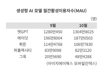 According to Financial News, while OpenAI continues to hold a firm lead in the domestic generative AI rankings, Grok from xAI, led by Elon Musk, has seen a rapid surge in users after enhancing its video generation features. While top-ranked services such as A. (SKT), Wrtn (Wrtn Technologies), and Perplexity (Perplexity) have experienced slight declines in user numbers, Grok is the only one among the top five to show significant growth.