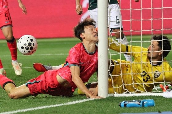 The friendly between South Korea and Bolivia took place at Daejeon World Cup Stadium on the 14th. In the ninth minute of the first half, Son Heung-min delivered a corner kick, and Lee Jae-sung launched himself toward the opposing goal for a header.