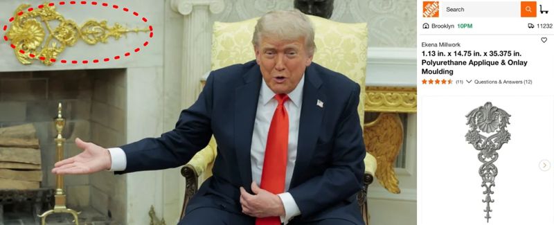 However, after Inside Edition, a TV news magazine, posted a video on its YouTube channel in May introducing Trump's newly renovated office, some netizens pointed out that the gold decorations in the footage looked 'strikingly similar' to polyurethane (PU) ornaments from the interior company Ekena Millwork, which are sold at The Home Depot for about $85.