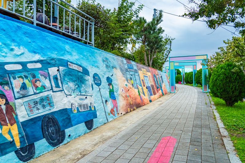 The tour begins at a small shop selling Mukho souvenirs, where you receive a stamp book. Next, you can browse over 3,000 types of pencils at Korea's first Pencil Museum and enjoy views of Mukho from the fourth-floor café. Passing through the old downtown area of Balhan Samgeori and the East Sea Central Market, you’ll arrive at Nongoldam-gil Street, Mukho’s signature mural village.
