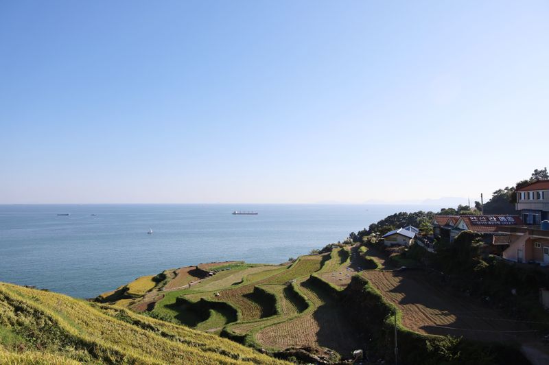 Gacheon Daraengi Village is another great place to visit with friends. Daraengi refers to terraced rice paddies carved into steep coastal hills by ancestors seeking to expand farmland during hard times. There are over 700 terraces, ranging from 10 to 1,000 square meters, forming 108 layers. Walking along the Daraengi Jiget-gil Trail, which follows the terraces and the Namhae coast, you’ll find yourself thinking, "I'm so glad I came here."