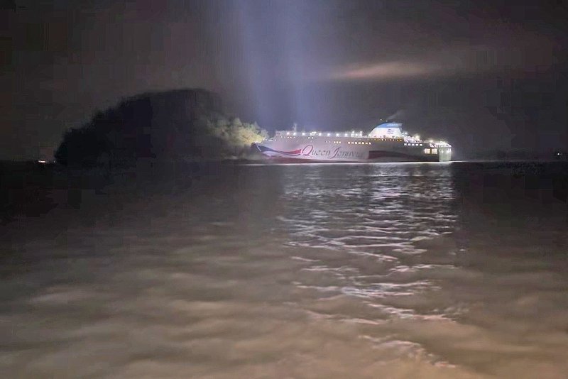 [Financial News] The Queen Jenuvia II, a large 26,000-ton car ferry that ran aground on an uninhabited island in Sinan County, returned to a nearby port about nine hours after the incident. The Korea Coast Guard (KCG) has launched a full investigation into the exact cause of the accident.