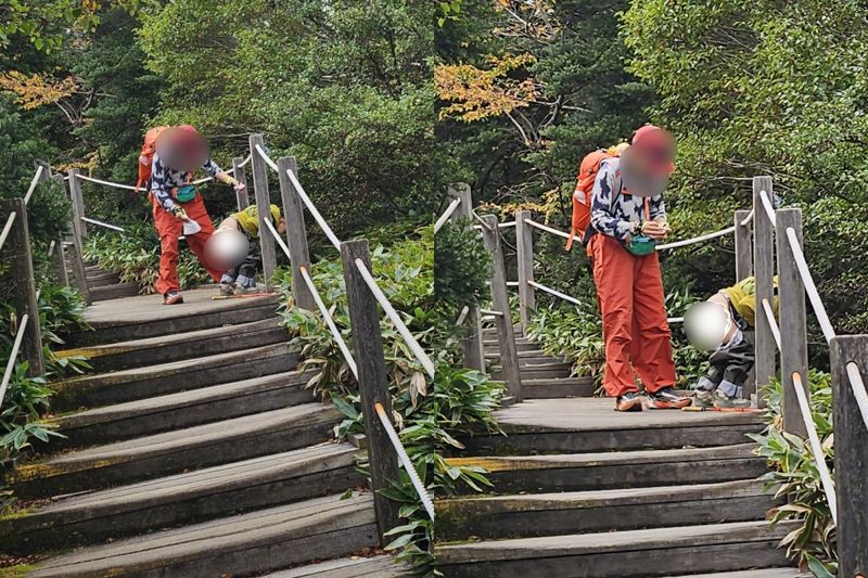 [The Financial News] Recently, a Chinese tourist was seen defecating along the stone wall at Gyeongbokgung Palace, sparking controversy. Now, it has come to light that a woman, presumed to be Chinese, allowed her child to defecate on Hallasan in Jeju.