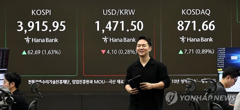 The KOSPI opened at 3,915.16, rising 61.90 points (1.61%) from the previous day.