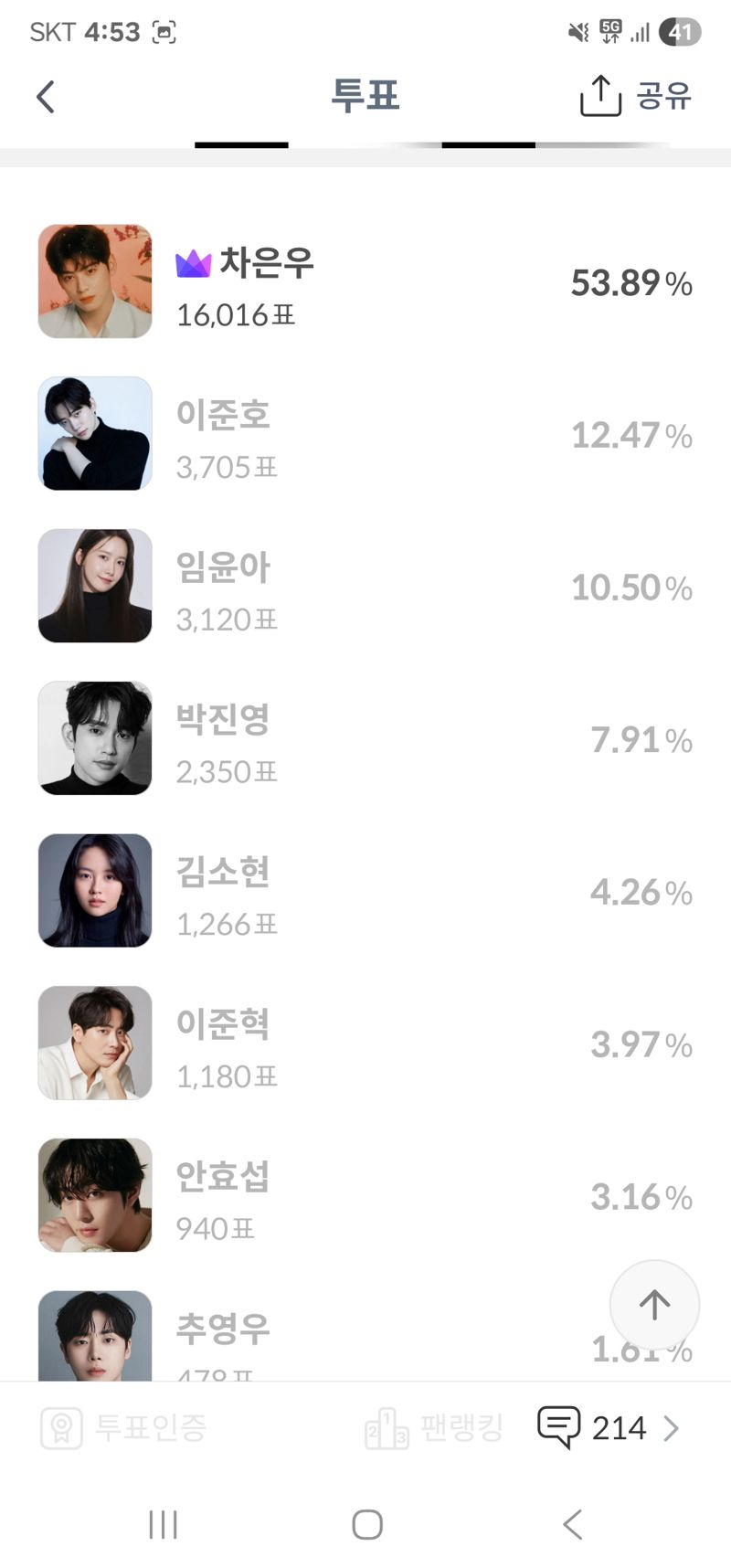 In the preliminary voting held from November 7 to 20, Cha Eun-woo secured first place with 53.89% of the total votes.