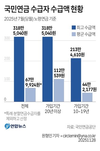Overall Average: 680,000 Won; Over 1.12 Million Won for Those with 20+ Years of Contributions