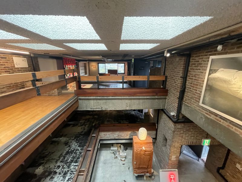 Stepping into the old building beneath the vines, we encountered a very different scene. The interior uses a skip-floor system that rises in half-levels along the slope, with large and small rooms in the old and new wings intricately connected. Because the same spot looks different depending on where you stand, it felt as though you could easily lose your sense of direction if you let your guard down.