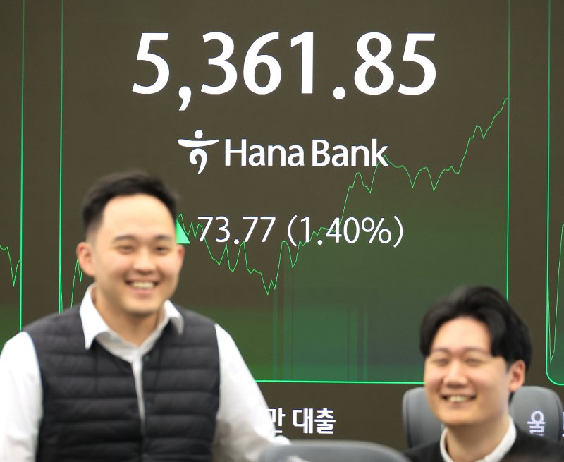 [Financial News] The Korea Composite Stock Price Index (KOSPI) jumped to the 5,360 level, supported by strong institutional buying. As of 2:20 p.m. on the 4th, the KOSPI was trading at 5,364.00, up 75.92 points (1.44%) from the previous session.