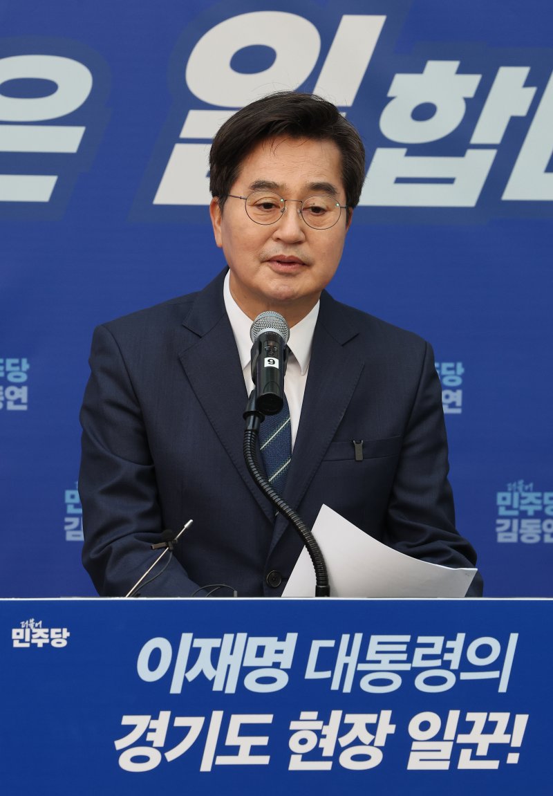 At Anyang Station, Kim Dong-yeon declared his bid for re-election, saying, "I am 100% confident of victory in the general election," and, "I will be a constant of victory that allows not even a 1% variable for defeat. I am also confident that I can sweep all 31 cities, counties and districts." He highlighted what he has achieved during his current term as governor and then laid out his key pledges should he win a second term.