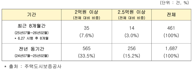 Under the June 27 Loan Regulations announced last year, the government lowered the maximum Newlywed Support Jeonse Deposit Loan limit in the Seoul Capital Area from 300 million won to 250 million won. It also tightened credit screening by reducing the jeonse loan guarantee ratio in the Seoul Capital Area and other regulated areas from 90% to 80%.