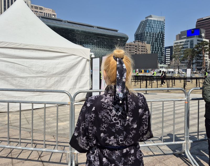 Jung said, "I don't have a ticket, but I came because I wanted to soak up the atmosphere on site," adding, "I'm especially looking forward to the newly released title track. I heard there would be huge crowds today, so I came prepared for the possibility that I might not be able to get out of Gwanghwamun easily."