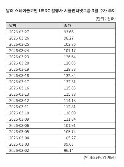 Markets reacted immediately. According to Investing.com, Circle (ticker: CRCL) plunged 20% on the 24th local time, when news of the compromise broke, falling to 101.17 dollars. The weakness continued, and by the close on the 27th the stock stood at 93.66 dollars, down roughly 30% from its recent short-term peak. Related names such as Coinbase (ticker: COIN) also suffered broad declines.
