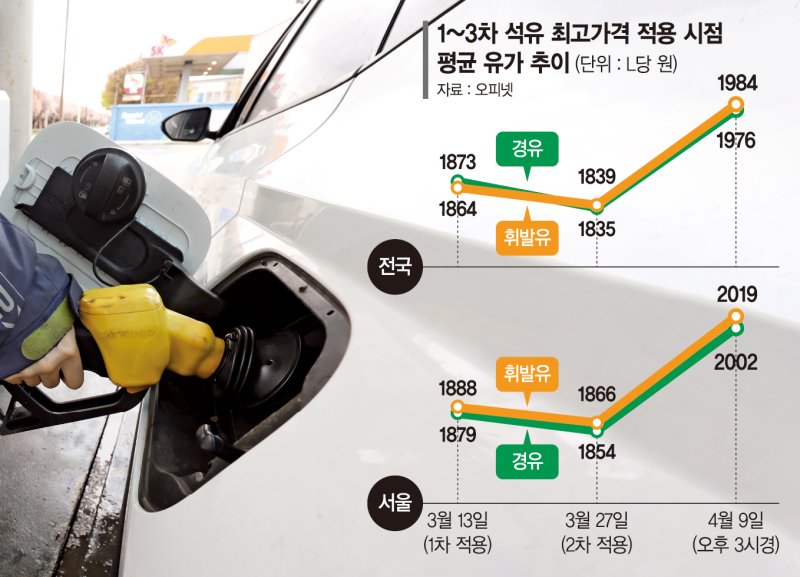 The Ministry of Trade, Industry and Resources believes that prices of petroleum products such as gasoline and diesel have risen more slowly than initially expected since the second phase of the oil price cap system took effect. Even so, the nationwide average prices of gasoline and diesel during the third phase are highly likely to exceed 2,000 won per liter.