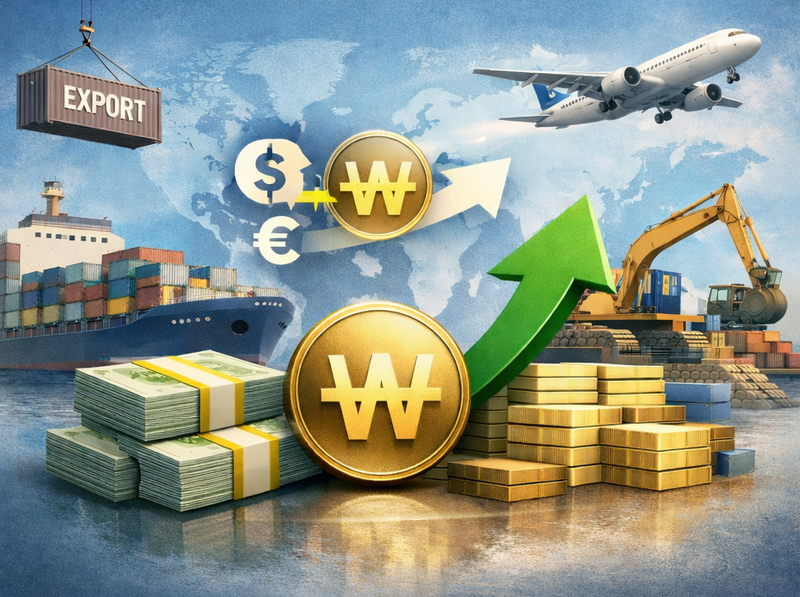 According to the Bank of Korea (BOK) report "Settlement Currency Composition of Exports and Imports in 2025" released on the 16th, the share of exports settled in Korean won (KRW) on a customs-cleared basis came to 3.4% last year. This was up 0.8 percentage points from a year earlier, marking a record high. The result contrasts with declines in all major currencies: United States dollar (USD) down 0.3 percentage points, euro down 0.1 percentage points, Japanese yen down 0.1 percentage points, and Chinese yuan (renminbi, RMB) down 0.2 percentage points.