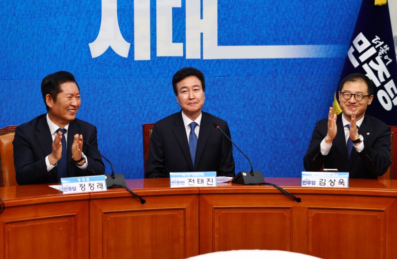 Party leader Jung Chung-rae said at the recruitment ceremony, "Right now, Ulsan needs someone who can break the old framework of regionalism, bring about a generational shift to younger leadership, and create a new wind in Ulsan, a blue wave." He added, "Kim Sang-wook, our candidate for Mayor of Ulsan, is young and fresh. Kim Tae-seon, head of the Ulsan City Party Committee, is also a young worker. Jeon will be joining that wave."